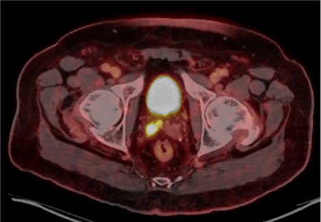 Figure 1. PSMA PET/CT imaging showing recurrent disease in the right posterior mid-gland and right SV. Source: NYU Langone Health