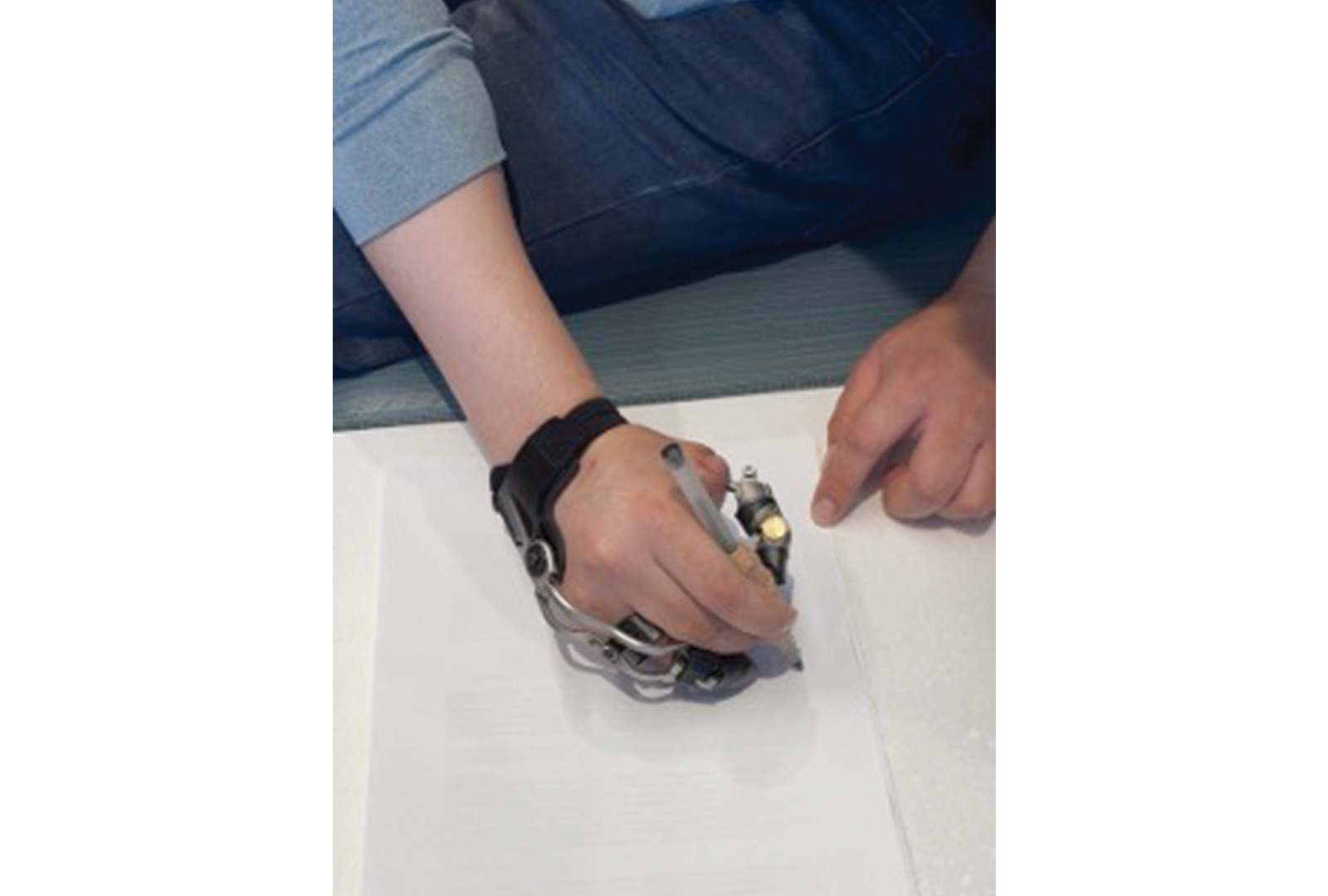 During a rehabilitation session, the patient practices a fine motor task—writing with a pen. Source: NYU Langone Health.
